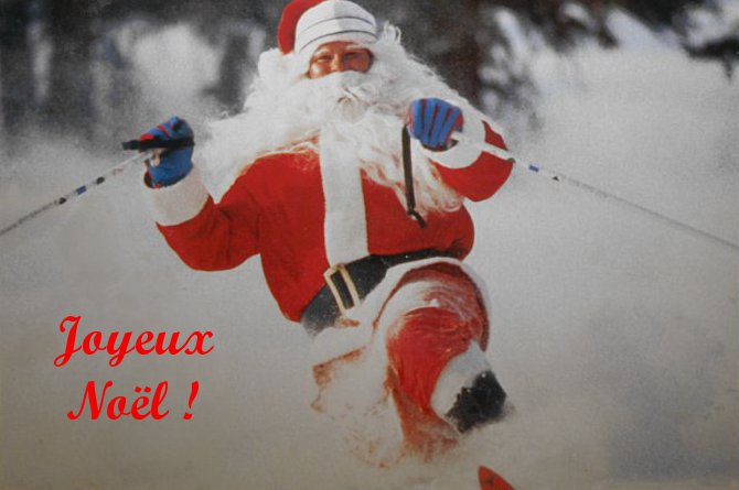 Rien de tel que cette belle photo du Père Noël qui télémarke dans la poudreuse pour vous souhaiter à toutes et à tous un très joyeux Noël dans la joie et la bonne humeur !