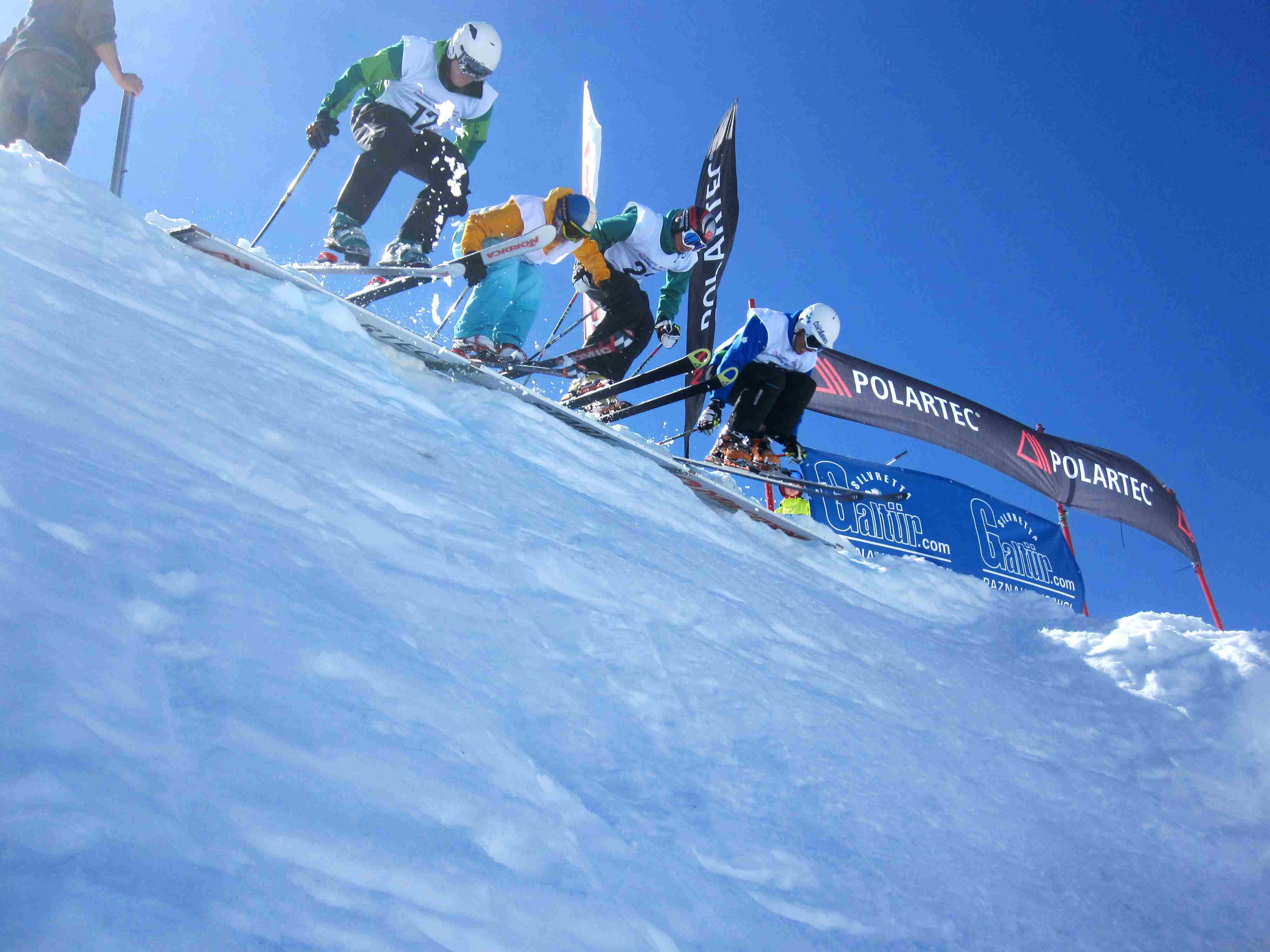 départ de ma demi-finale (de gauche à droite : Fritz Trojer, un autrichien (??), Jonas Schmid et moi)