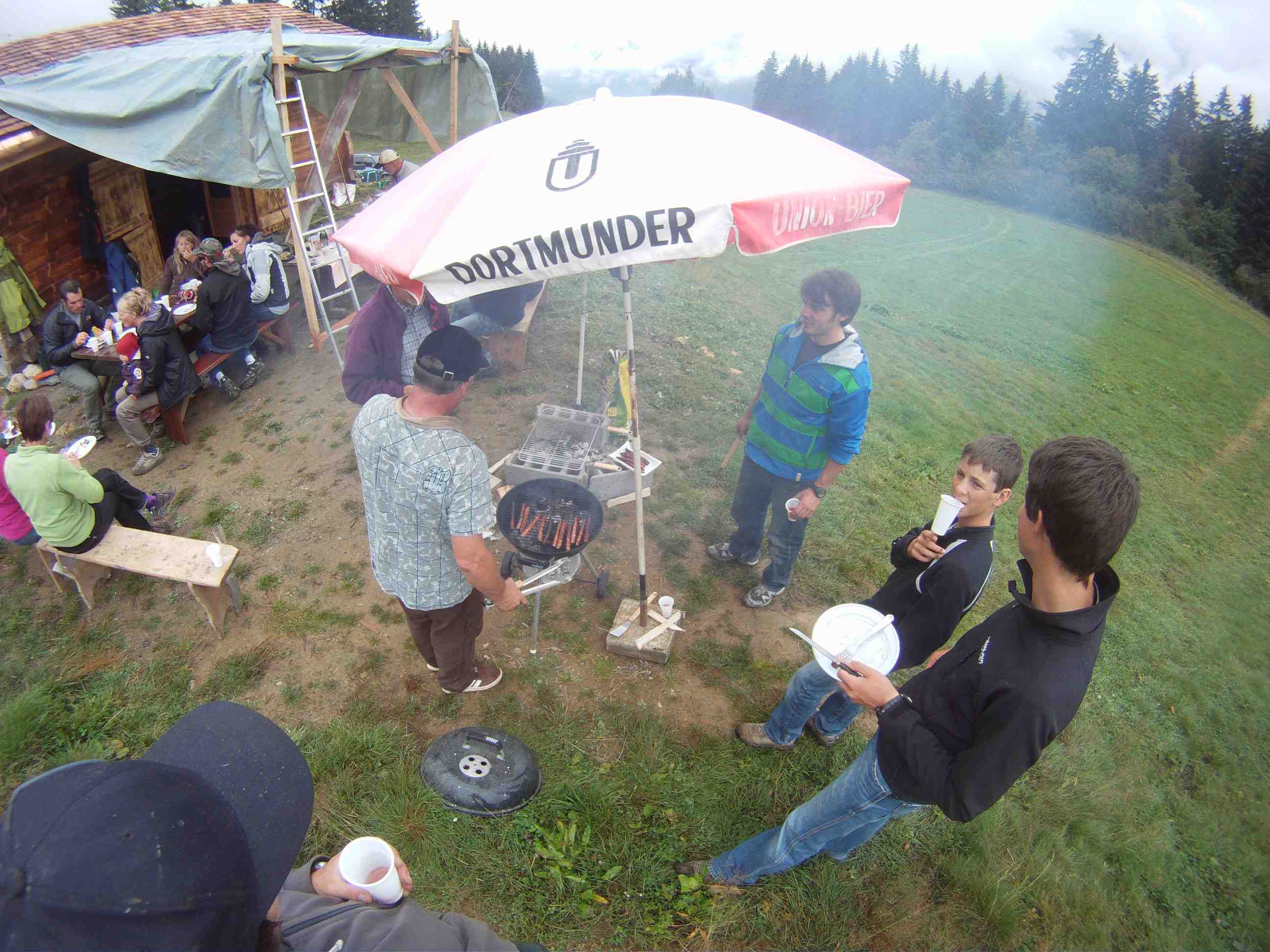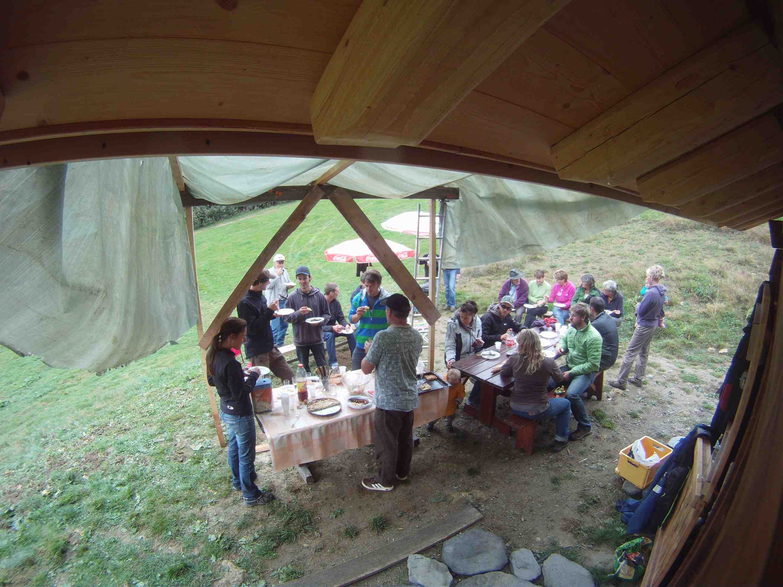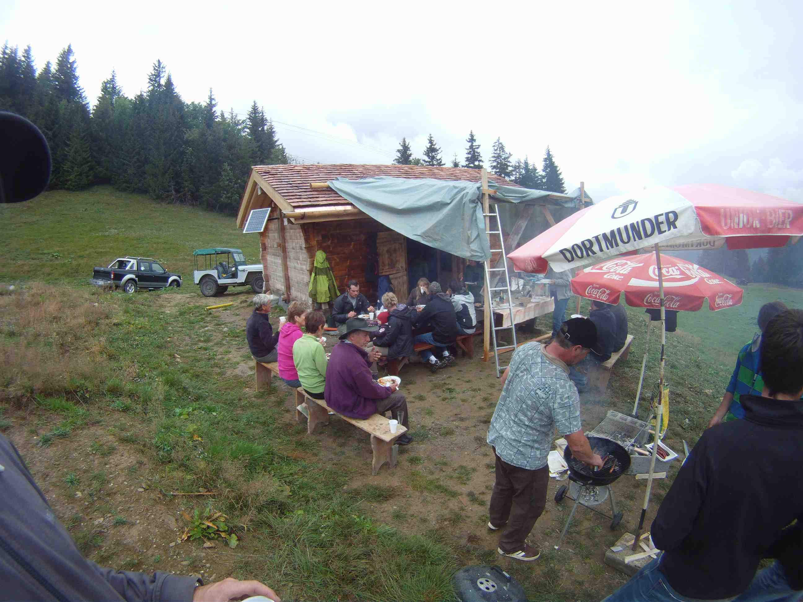 Après de nombreux week-ends de boulot durant le printemps et l’été, nous avons inauguré dimanche dernier notre petit chalet d’alpage situé à Montjoie. Nous souhaitions absolument remercier tous les gens qui nous avaient filés un coup de main, et malgré la pluie tout le monde a répondu présent.