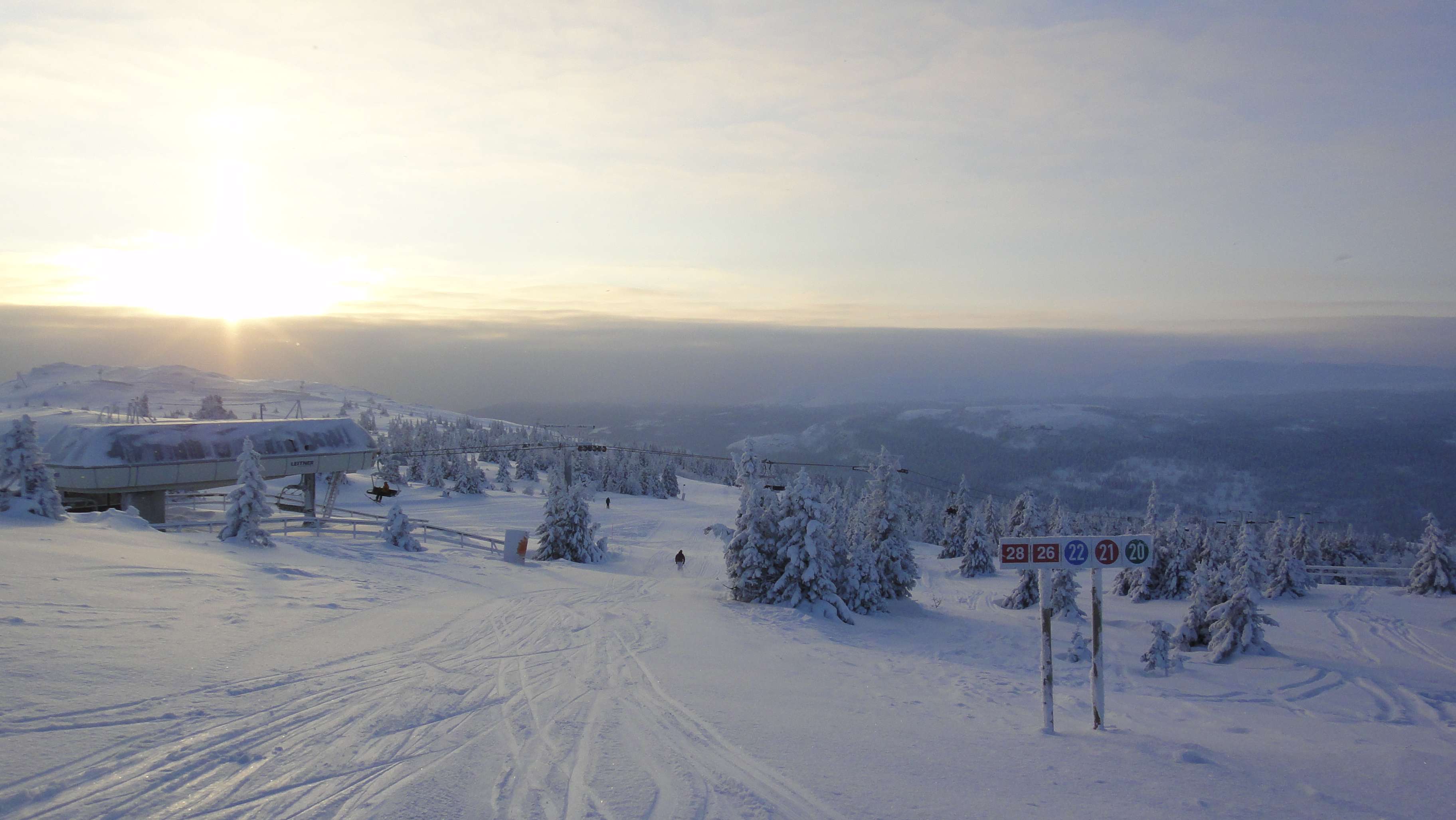 Voici une photo de Sven de ce matin, soleil rasant… depuis le sommet de la station :
