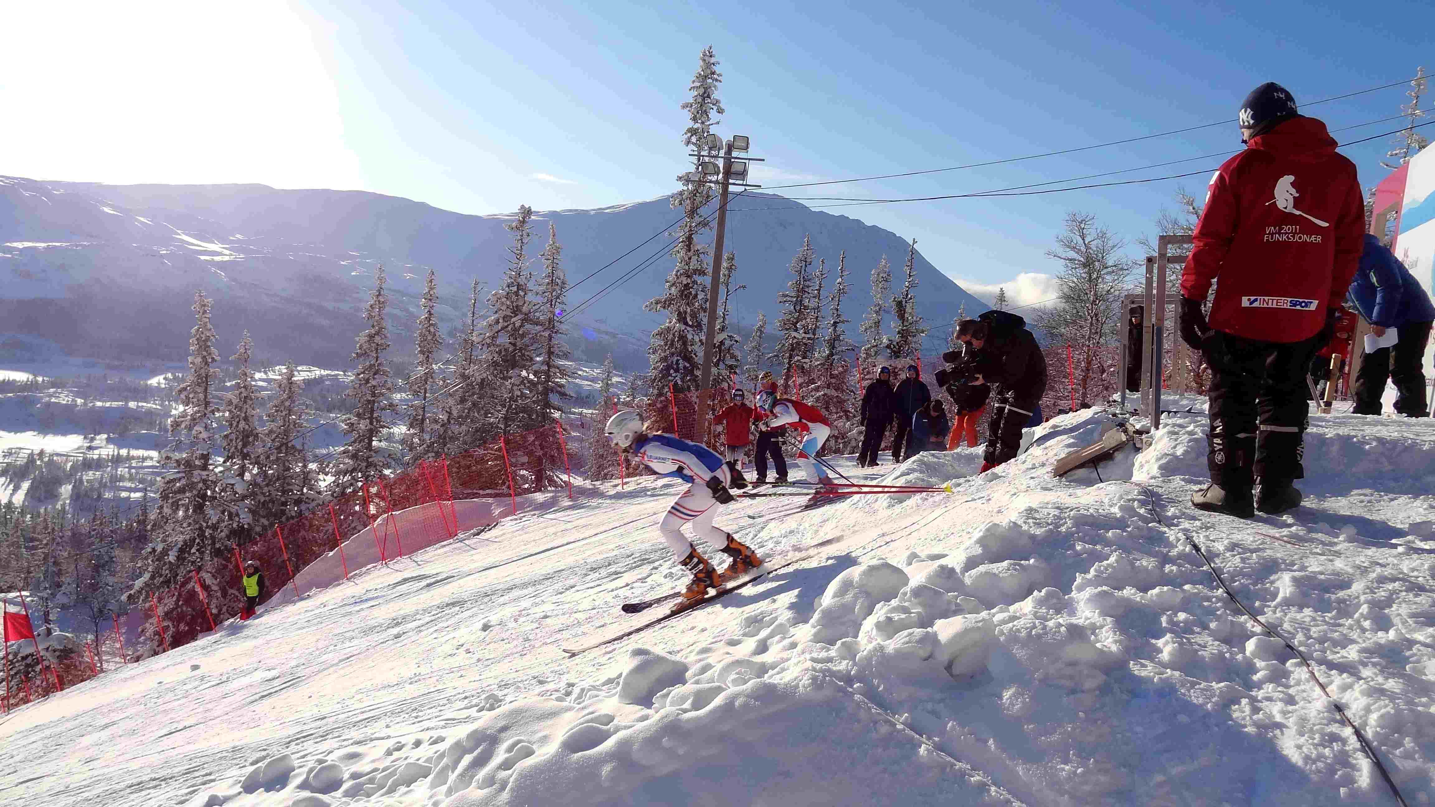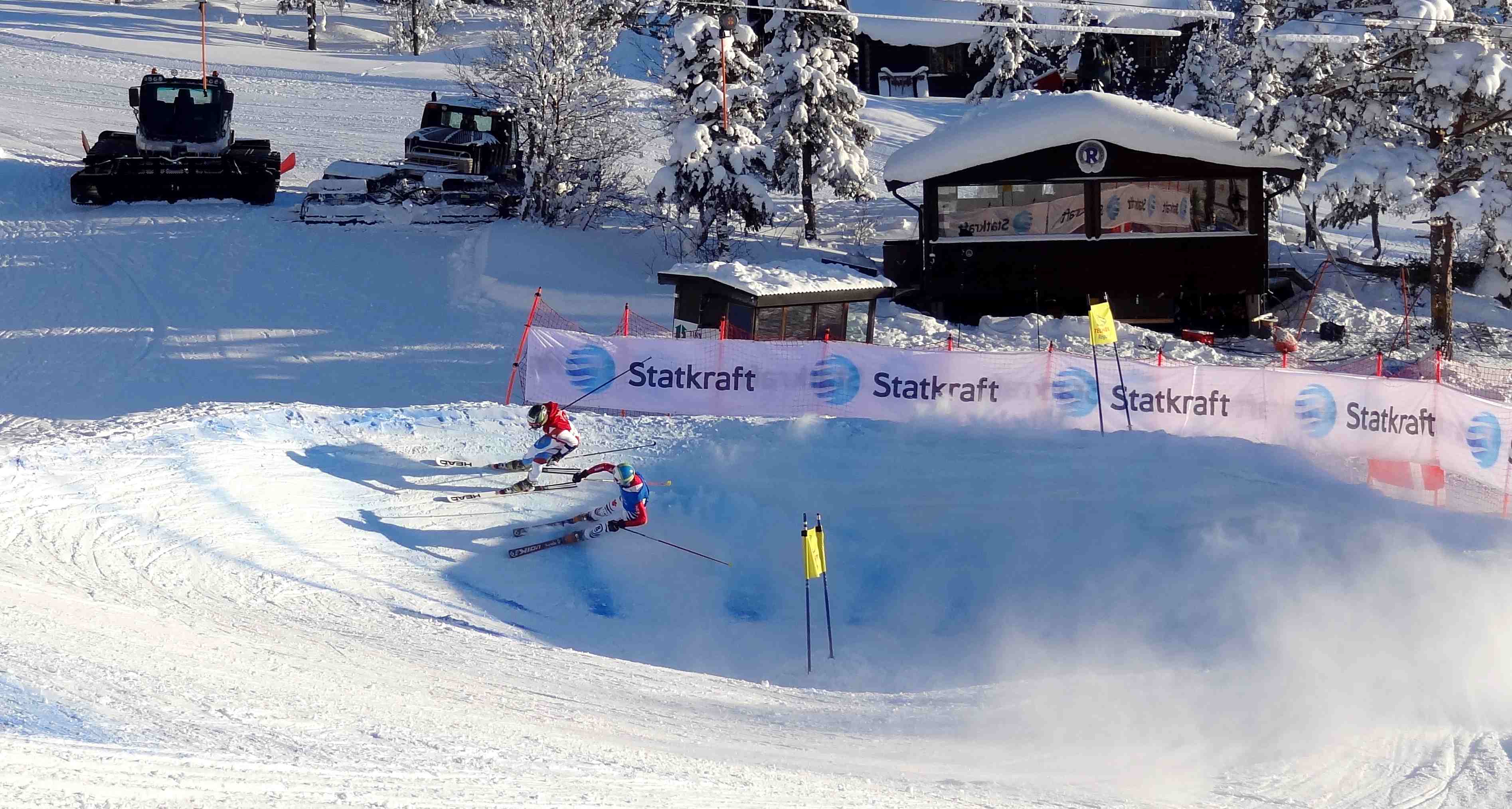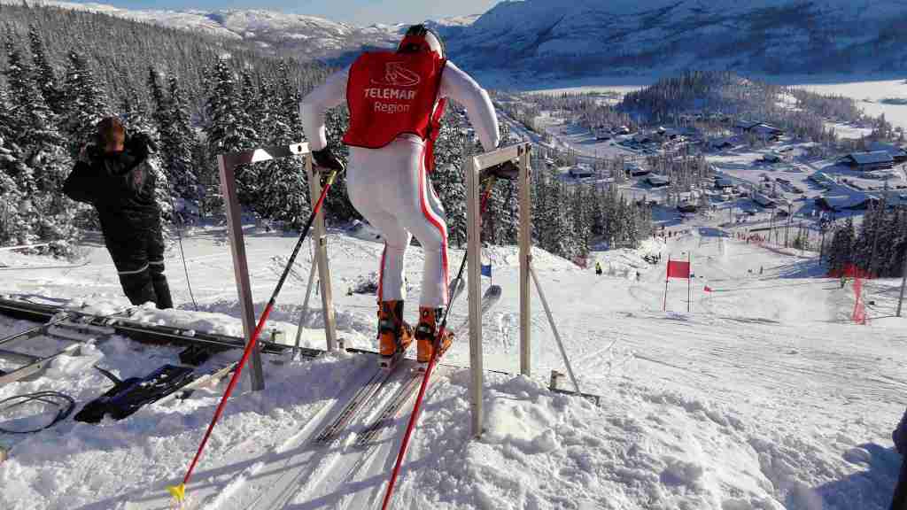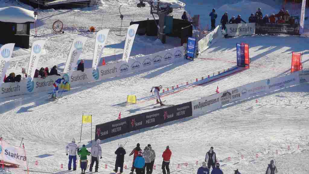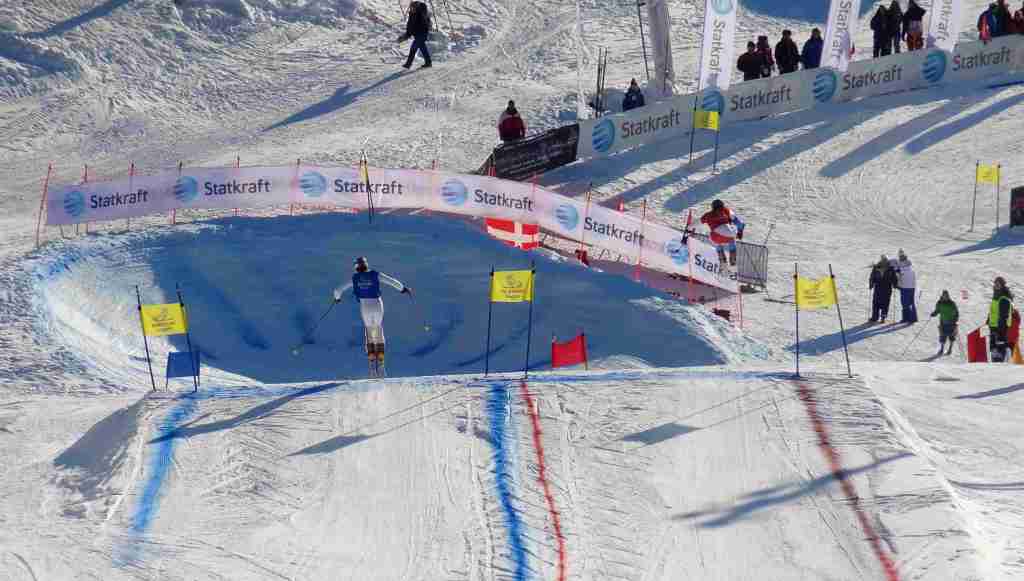 C’est sous un soleil resplendissant et un froid sec que c’est déroulé cette première dual sprint en coupe du monde de télémark. Ce matin avait lieu les qualifs, avec une manche dans chacun des 2 tracés. Le temps total définissait le classement et attribuait à tous les qualifiés (16 premiers) un nouveau numéro de dossard. Phil remporte la qualif devant les 2 allemands Tobias Muller et Bene  Holtzmann avec sa belle boule à zéro. Je termine 13ème, en assurant un peu trop. Sven, Chris et Clément se qualifient également, nous sommes donc 5 français en final, et notre seule française Laura passe également.