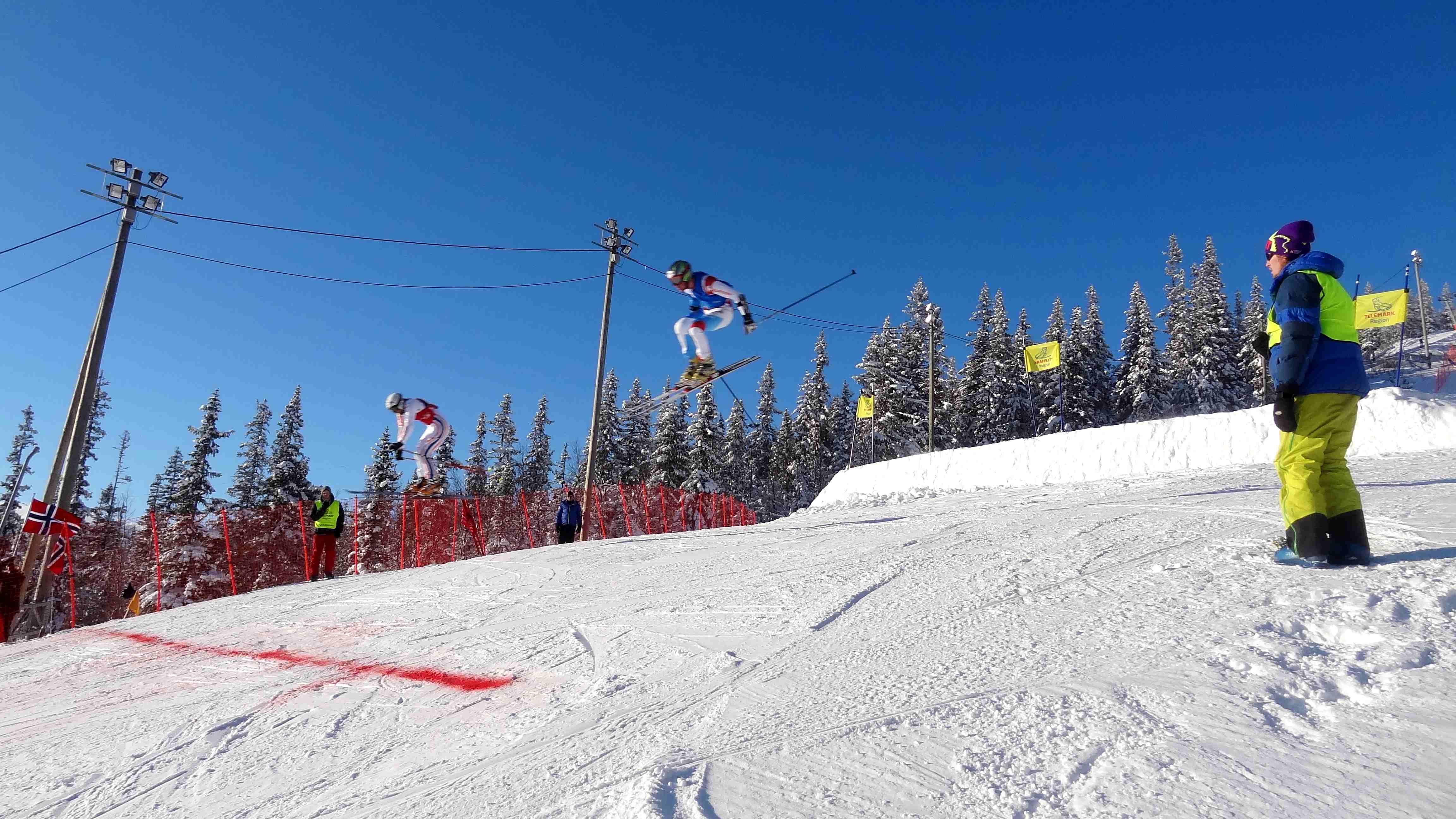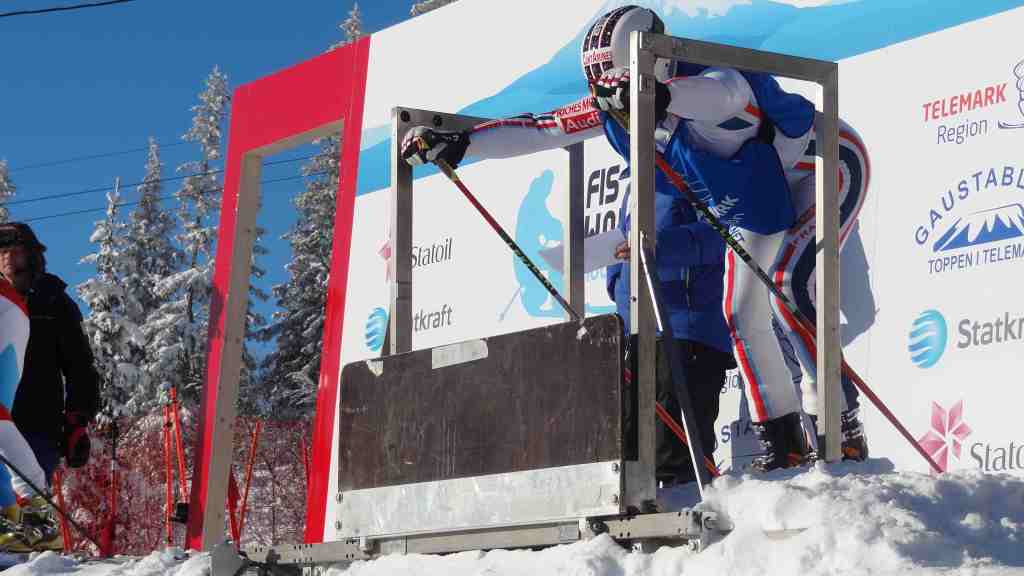 En huitièmes de final Phil et Clém se rencontrent, et Phil l’emporte. Je tombe contre le norvégien Carl Jorgen Holst. Je gagne le premier run et perds le deuxième, mais j’arrive à me qualifier d’un rien pour les quarts de finale. Sven et Chris se font sortir dès le premier tour. Ensuite en quarts je tombe contre mon pote suisse Bastien Dayer. Sur le premier run je suis sur ces talons à la sortie du loom : à ce moment là il faut lever la tête et regarder 2 juges qui tiennent chacun un panneau avec les inscriptions 0, 1, 2 ou D. O signifie pas de pénalité et parcours nordique normal. 1 signifie une pénalité et le coureur doit alors faire une petite déviation dans le parcours nordique. 2 signifie deux pénas et une déviation un peu plus grande. Enfin D signifie « disqualifié », ce qui veut dire que le coureur a pris plus de 2 pénalités dans le géant : un retard de 5 secondes est alors ajouté à son temps et il prend le parcours nordique normal.