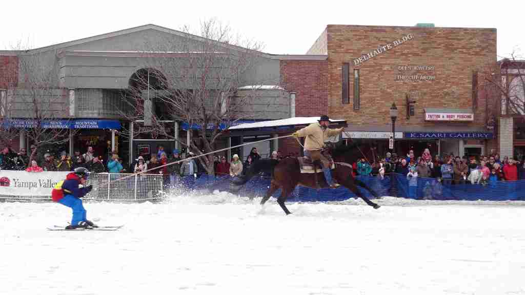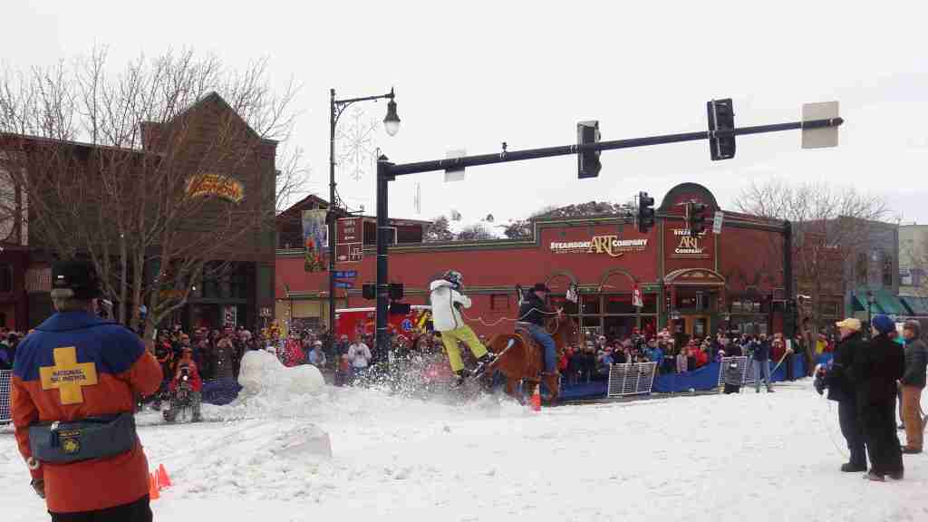 Les animations autour de ce carnaval se sont poursuivis ce matin sur la rue principale de Steamboat, recouverte de neige pour l’occasion. Nous avons assistés à une course de ski-joring pour les enfants, puis à un concours de saut, toujours en ski-joring… très créatifs ces américains! Et aussi très accueillants, curieux et souriants… tip top!