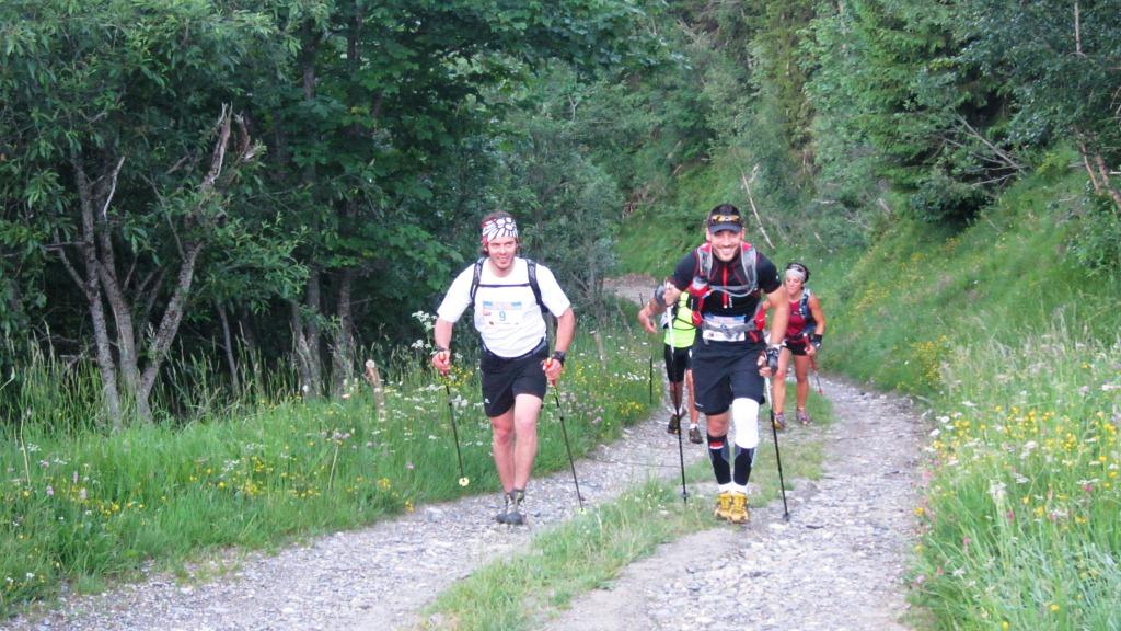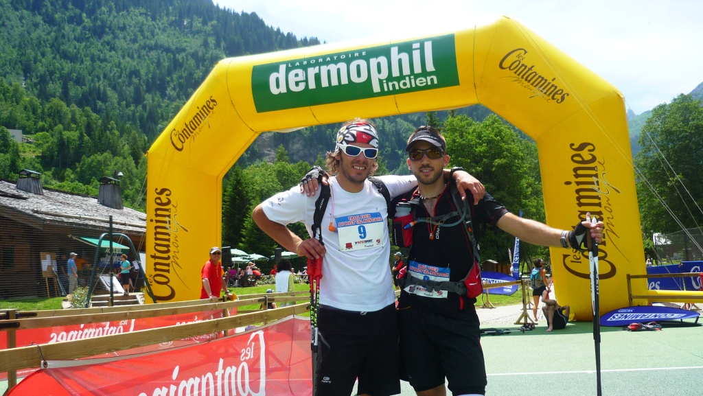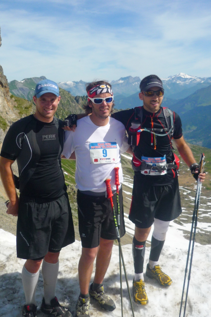 C’est avec un peu de retard que je viens raconter ce premier trail du Haut Val Montjoie qui s’est tenu dimanche dernier. La faute à une semaine de travail bien chargée! C’est finalement avec Alex Adami que j’ai couru ce trail par équipe, car Julien s’était blessé au genou quelques jours avant le trail… Il s’était malgré tout déplacé pour venir encourager ces 2 poulains tout au long du parcours… au top le coach! Clément Bergeretti était là aussi et a fait toute la 2ème partie du parcours avec nous. La première montée « à la fraîche » pour rejoindre la tête de la Combaz était splendide, avec levé de soleil en prime sur le Mont-Blanc. Ensuite tout a bien été jusqu’à la descente du Col de la Cicle où j’ai commencé à prendre quelques crampes au mollet… Heureusement le ravitaillement de Nant-Borrant ainsi que l’élixir anti-crampes qu’un ami m’a passé m’ont remis d’aplomb pour les 10 derniers kilomètres : la raide montée jusqu’à Tré-la-Tête puis la descente jusqu’au Parc de loisirs du Pontet. Nous avons clôturé ces 46 km en 7h10 à la 9ème place sur 24 équipes, très fatigués mais content d’avoir pu partager cette belle journée sportive à deux.