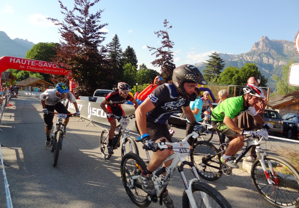 Et ensuite la journée n’était pas fini puisque nous étions inscrit à la MB Street. Un peu le même principe qu’une Dual Sprint : 2 runs de qualif individuels sur un tour de 1km dans les rues de Combloux, avec passages d’escalier, obstacles, chemin en terre… en montée et descente. Puis les 16 premiers des qualifs s’affrontaient à 4 dans la boucle. Niels n’a pas pris le départ, son vélo étant HS. Quant à moi j’ai terminé 11ème des qualifs, je me suis donc retrouvé en quart de finale! Et je me suis fait sortir dès les quarts, en prenant la 3ème place de mon run. J’étais cuit, et content d’en finir sans casse! Mais comme en télémark j’aime beaucoup ce format de course, avec du palpitant et de l’imprévu!