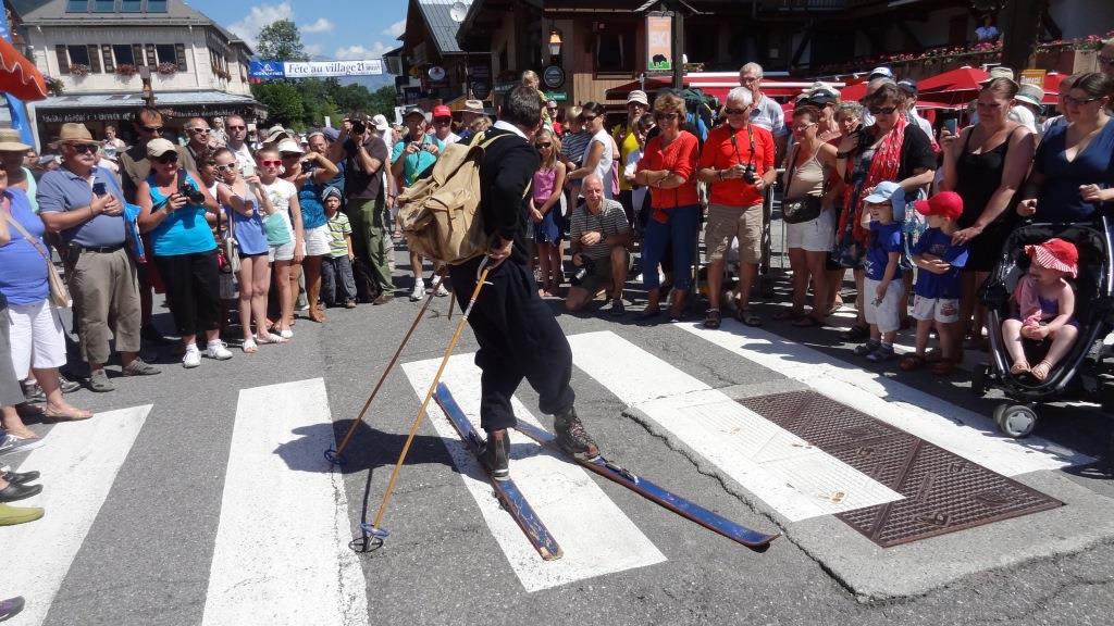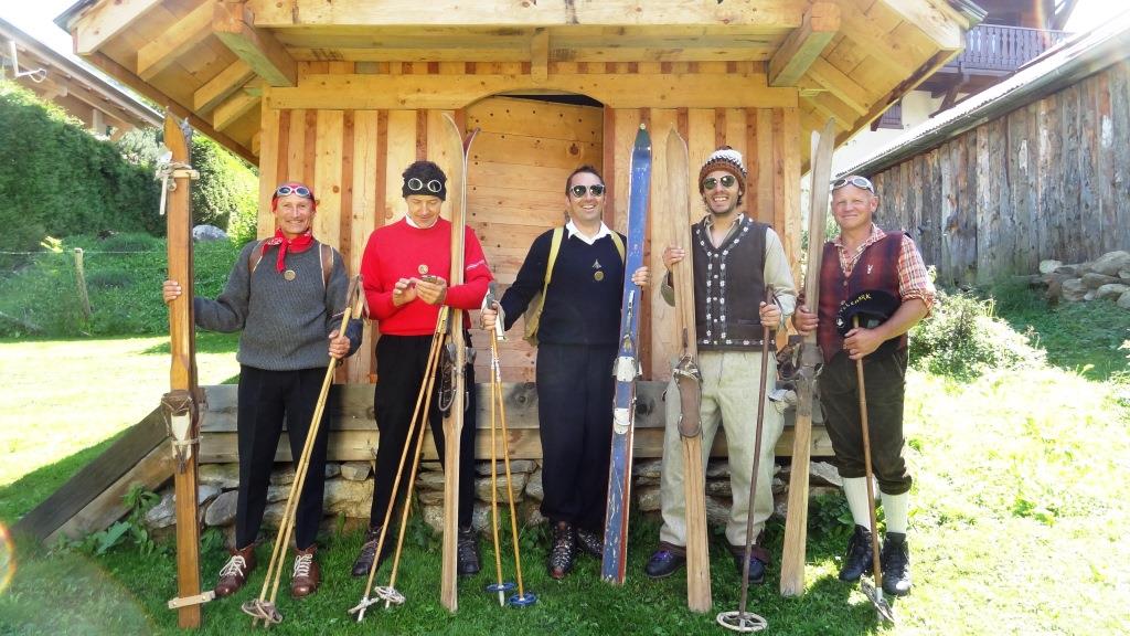 J’avais également ressorti les skis dimanche dernier pour la fête au village aux Contamines. Des skis 100% bois, sans semelle plastique ni carre en acier, avec 2 bouts de lanière en guise de fixations télémark! C’était un autre sport à l’époque!