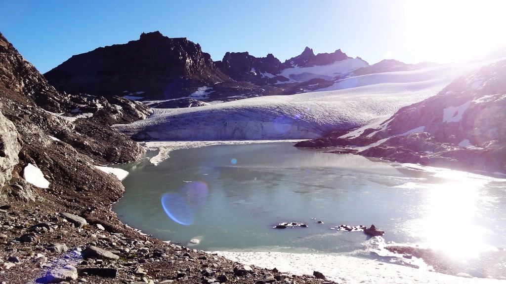 J’étais du côté de la belle vallée de la Haute-Maurienne avec Marion ce week-end… pour une superbe « rando-alpi » samedi, la Pointe Francesetti (3425m). Une sortie facile et dépaysante, au départ du village de l’Ecot, au-dessus de Bonneval sur Arc. Après avoir atteint le refuge des Evettes, face à l’Albaron (3600m) que j’avais fait il y a 2 ans, nous nous sommes dirigés vers le glacier du Grand Méan et son somptueux lac sous-glaciaire. Un cadre merveilleux, calme, ressourçant… Puis nous avons remontés le glacier du Grand Méan jusqu’au col de la Disgrâce et enfin la Pointe Francesetti. Encore une belle journée… 🙂