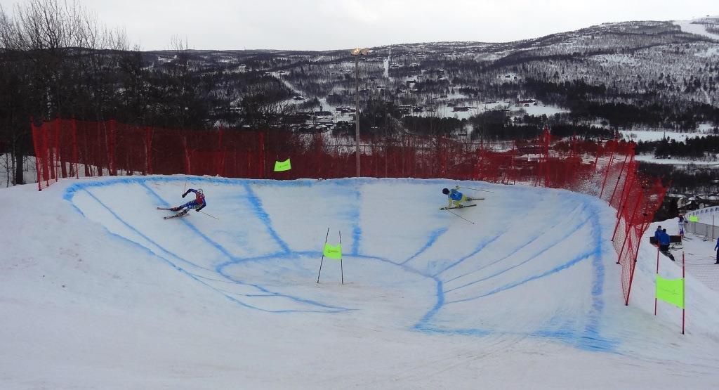 Pas de grande performance pour moi aujourd’hui, mais surtout une belle frayeur avec une grosse chute dans le loom dès le 1er run des huitièmes de finales contre le suisse Nico Michel. Nous sommes arrivés tous les deux côte à côté à l’entrée du loom, j’ai essayé de tendre la trajectoire à l’intérieur et je n’ai pas résisté à la compression… tête la première au fond du loom avec un joli grand écart, qui m’a bien tiré l’adducteur droit (je suis pas un gymnaste faut croire !). Du coup j’ai entraîné Nico dans ma chute, j’ai donc pris péna max dès ce 1er run (+3 secondes), et ce fut compliqué de les reprendre au second run, surtout avec la douleur. C’est comme ça. J’espère que la douleur ne me gênera pas demain pour la suite des compétitions…