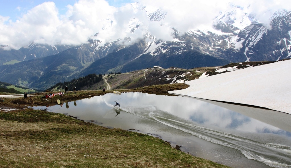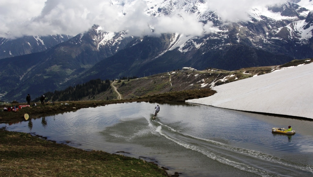 C’est avec quelques semaines de retard que je viens vous raconter en photos et vidéo notre traditionnelle journée de glissade sur l’eau! Notre pèlerinage au Col du Joly a eu lieu le 29 mai dans des conditions parfaites, une piste d’élan enneigée et pas un pet de glace sur l’eau, royal ! De gros moyens cette année, avec un bateau gonflable sur le lac pour « assurer la sécurité », et des photographes et cameramans de talent pour immortaliser nos pirouettes sur l’eau : Jean-Yves Raffort, Mathilde, Flo, Momo et tous les autres. Un grand merci 🙂