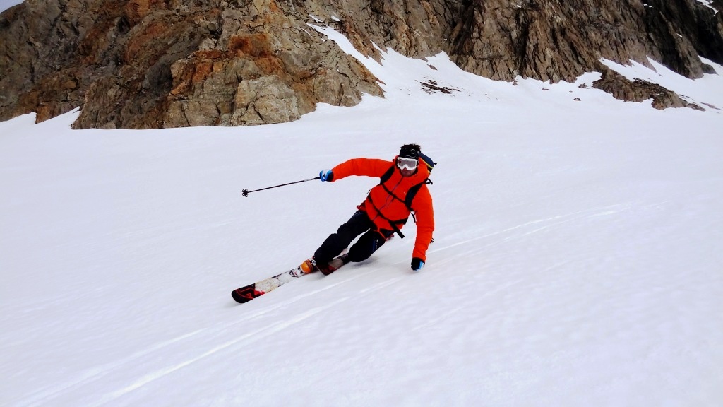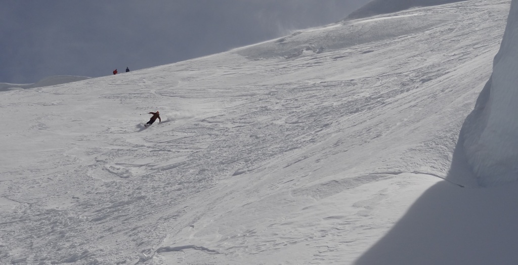 8_arete des domesLa majestueuse arrête des Dômes9_arete des domesEt le mauvais temps qui arrive sans prévenir10_descenteDescente côté Sud, neige dure sur le haut puis petite moquette plus bas11_JoTechnique impeccable made in Grand-Bornand