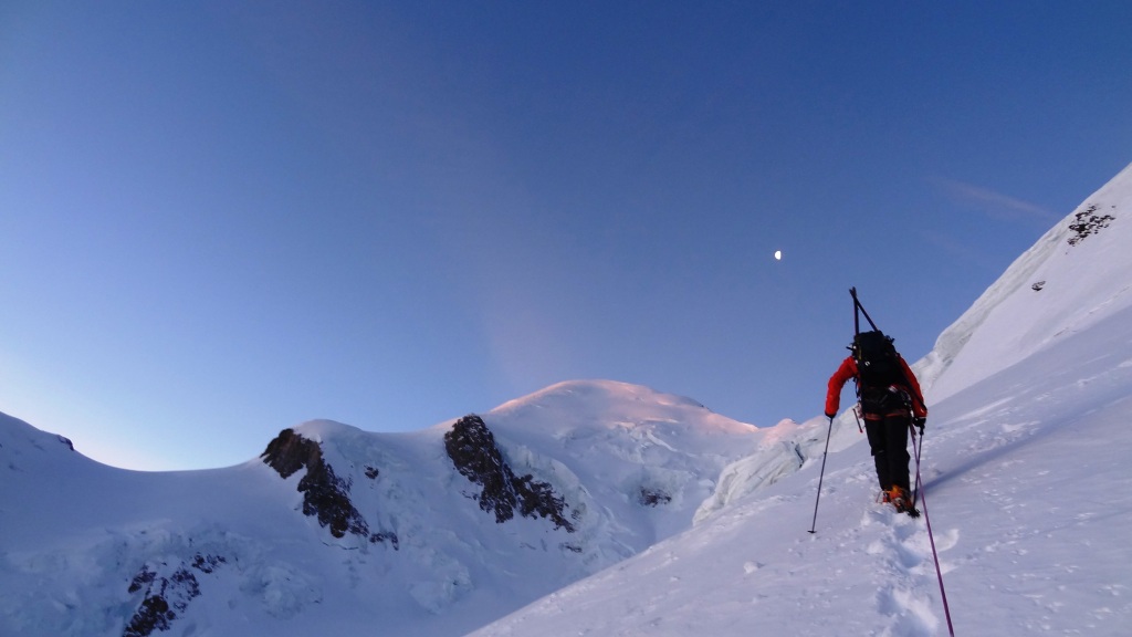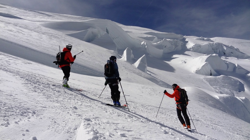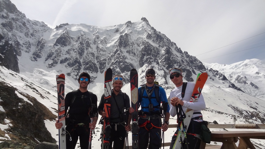 J’ai passé ces 4 derniers jours avec une belle brochette de champions, Ju, Jo et Gillou, à la recherche de belles pentes de neige pour finir la saison en beauté. Après pas mal de check météo et de coups de fil dans les refuges du coin, nous nous sommes décidés à la dernière minute : premier objectif les Dômes de Miage aux Contas, puis si ça voulait bien faire on tentait le Mont-Blanc dans la foulée… et avec un peu de réussite sur la météo et une équipe motivée comme jamais, nous avons réussi cet enchaînement ! Les jambes sont lourdes en ce dimanche soir, mais que c’était bon !