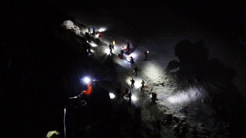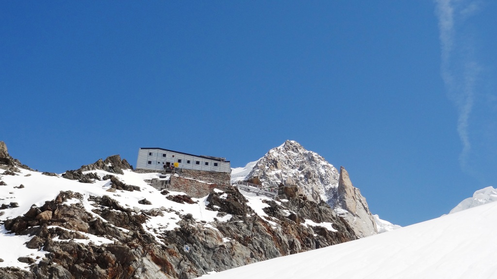 Toujours les mêmes, le lendemain, au pied de l’Aiguille du Midi 2_Jonction3_JonctionPassage de « La Jonction », slalom entre les séracs…4_Grands MuletsLe refuge des Grands Mulets, perché sur la moraine du glacier5_teamPrêt à en découdre avec l’arête du Goûter derrière nous6_nightSpectacle improvisé7_night