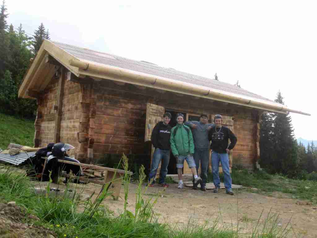 Voici quelle est ma principale activité durant les WE en ce moment : couvrir en tavaillon le toit de notre chalet d’alpage! Avec mon bof Doug, Flo le frangin et Brice alias « le tequel » venu donner un coup de main le WE dernier…